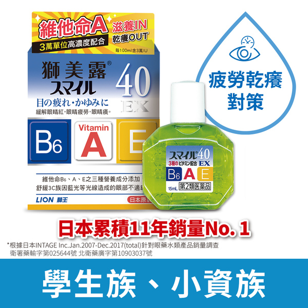 獅美露活視捷眼藥水擁有維他命A獨家專利技術,直接為眼睛補足滿滿能量,適合日理萬機的商務人士以及樂齡族,一同守護靈魂之窗。涼感強度為「等級4」。