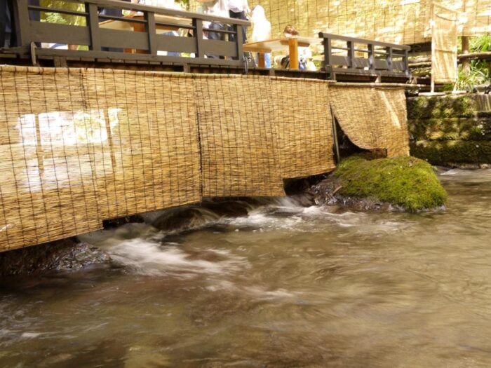 距離河川水面只有一公尺多的距離,光是走進來坐下,就讓你涼意滿滿! 如果你還沒有體會過那捕捉消縱即逝麵糰的刺激感,未來夏天到京都,請一定要去貴船吃吃看傳說中的「川床」流水細麵:不僅僅是流水細麵,還給你配上京都的「川床」文化,在河川上搭了榻榻米,讓你直接在淅淅漱漱響著的川水上吃流水細麵,讓你除了舌頭涼快,連身體與聽覺都涼快了起來。