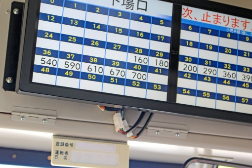 日本公車通常都是從後門上車,從前門下車。當公車到站後,先從後門上車抽取整理券或是拍電子票卡,整理券上會有一個號碼,就是上車時的站號。待下車的時候可以在公車內上方的顯示板上找自己上車的站號,下面顯示的金額就是這次的車資。