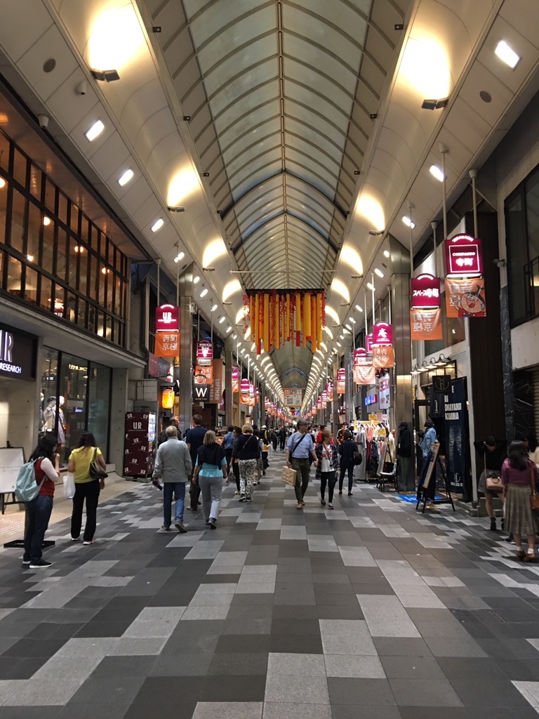 因為往往在經過這裡時,大家都被眼前的僅天滿宮吸引了注意力,沒發現通過的路左右也是一條可以逛的商店街,於是這條相對於新京極,溫度一下降了很多,寺町商店街不僅是人潮,或是路邊商店擺放的方式都與新京極截然不同,因為大家東西都比較少擺在外面,相較之下這邊路寬廣了許多,說「有溫差」再貼切也不過了!