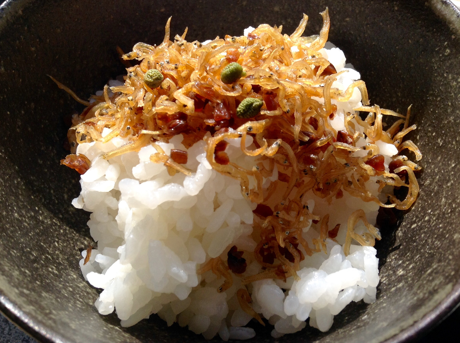 最後推薦給大家的是京都的名菜「山椒小魚」又稱「山椒吻仔魚」(ちりめん山椒),使用生山椒粒與京都細細軟軟的吻仔魚炒在一起,有種特別的清香,微辣的口感特別地下飯,大家經過錦市場不妨到處看看尋找有沒有自己喜歡的口味喔!