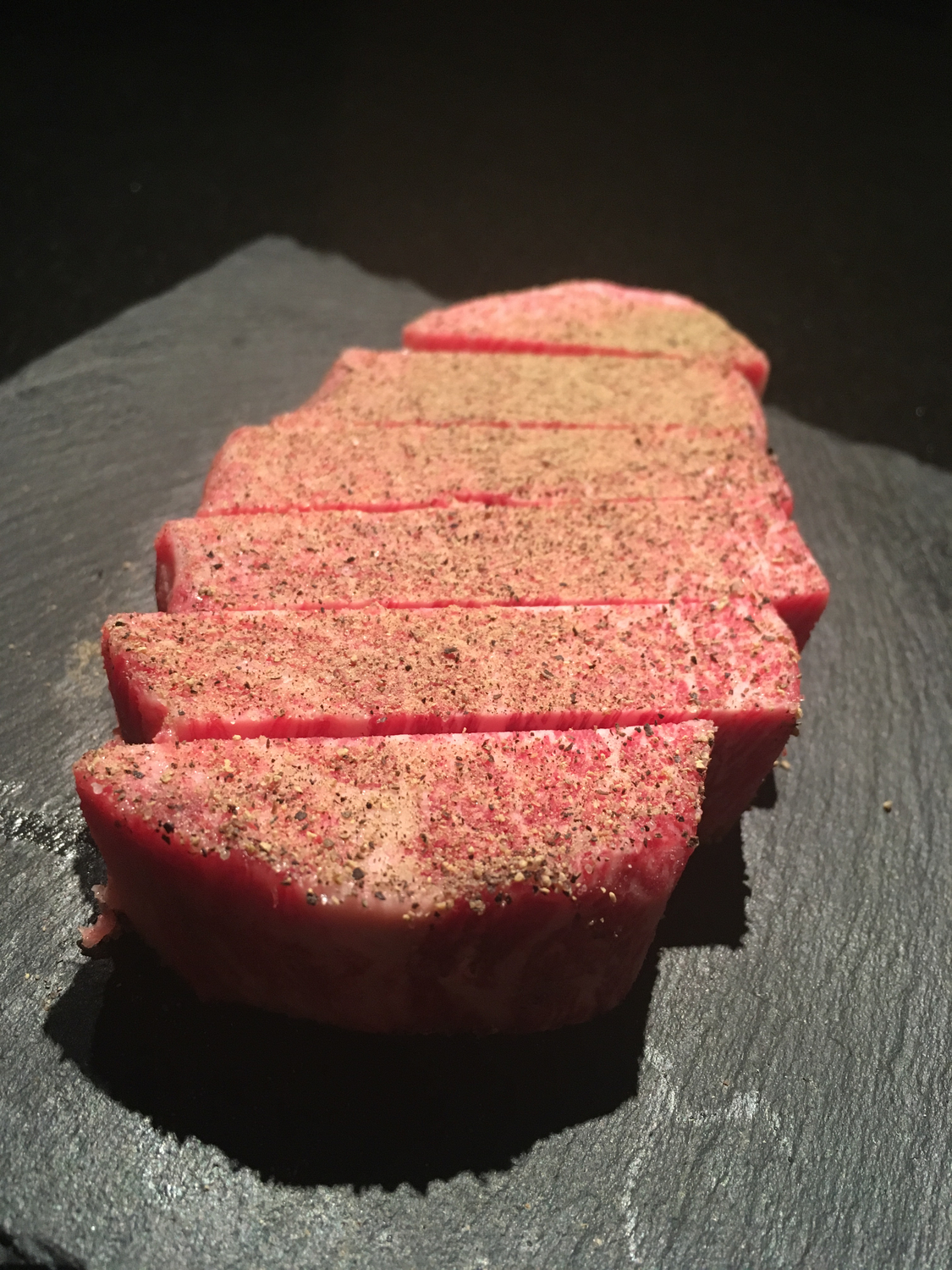 「ヒレ」(Hire)就是菲力,指的是腰內肉。因為這部份是活動最少的地方,所以口感非常軟嫰,油脂也少。因為一隻牛身上就只有一小塊,所以是非常珍貴的部份,亦不是太多地方可以點。
