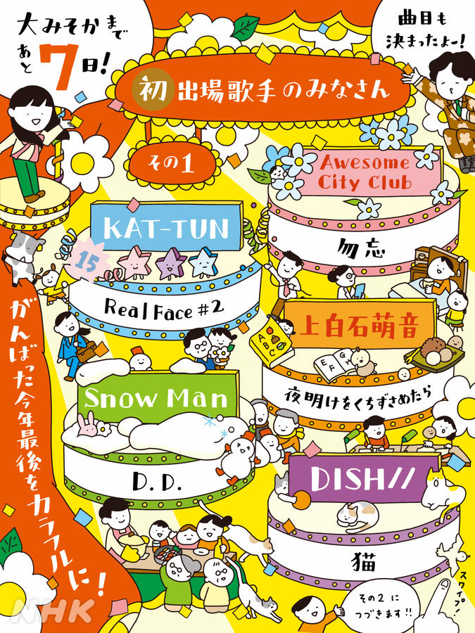 以上就是2021年NHK紅白歌合戰的主持人以及白組男藝人嘉賓與曲目的介紹,另外還有2021NHK紅白歌合戰大預習!紅組看點,看完兩篇文章可迅速了解今年必看的曲目,大家一起在跨年夜好好欣賞他們的演出吧!