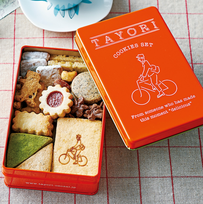 橘紅色底白字的懷舊餅乾盒裡,同樣裝載著手工餅乾!有將楓糖漿與六種堅果混合而成「楓葉堅果」、小朋友超級喜歡的「巧克力片」、可愛的「熊形餅」,每一塊餅乾都能吃得到大自然的恩惠,這就是食の郵便局想帶給大家的美味真心!