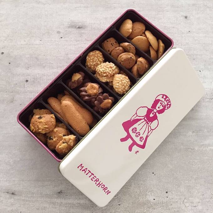 創業於 1952 年的 MATTERHORN 雖貴為老店,但卻以西式點心與喫茶店的相互融合為名,包裝的設計更是大有來頭,是由昭和時代的重要畫家鈴木信太郎所繪製,憂鬱的少女搭配著吃一口就能令人喜悅的甜點,這樣的反差卻毫無違和的表現出對於甜點的喜愛啊!