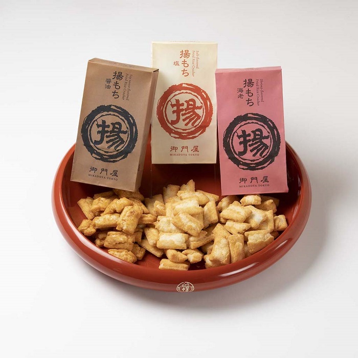 而使用宮城縣産的最高級糯米MIYAKOGANE的炸麻糬也是御門屋招牌的人氣米菓,有三種口味醬油、鹽味與鮮蝦,這款自己買來吃還是送禮都相當適合唷。