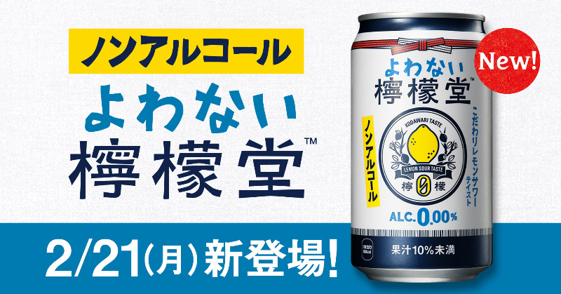 檸檬沙瓦「檸檬堂」自2019年10月進佔日本全國大小商場後即迅速造成搶購、囤貨的熱潮,甚至一度因太過於暢銷導致生產不及只得暫停銷售。如此受到大眾喜愛、讓人巴不得每天都想攝取一下的「檸檬堂」,對雖久仰大名但因身體因素而只可遠觀而不可褻玩焉的族群、甚至是對特殊時刻需禁酒精的人們來說都是可愛又可恨的存在。不過,值得慶幸的是「檸檬堂」的製造商、也就是日本可口可樂公司充分掌握到了大家的熱切期盼,於2022年1月25日宣布將推出旗下第一個無酒精飲料品牌「よわない檸檬堂(暫譯:喝不醉的檸檬堂)」。