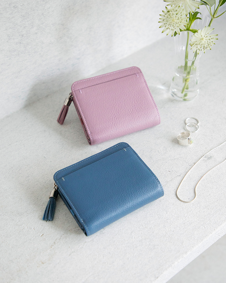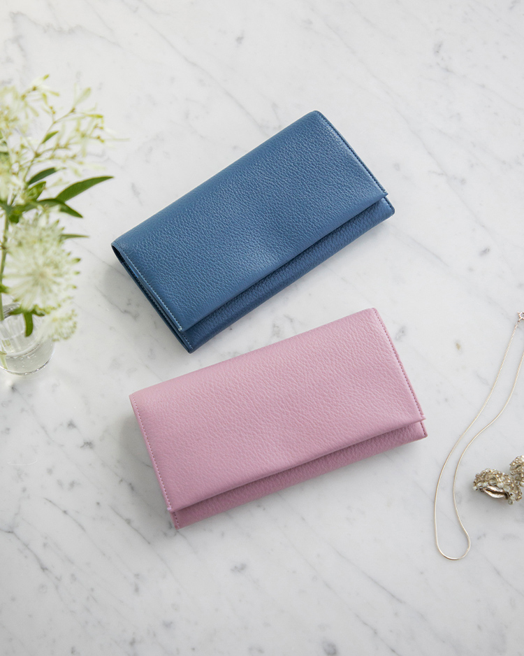除了包袋單品之外,粉藕色與霧藍色在皮革配件上的呈現也非常具有春夏氛圍。在結帳 時刻,從包袋取出的皮夾,有別於許多基本的黑棕色系,藍色及粉藕色的柔和色調除了 能帶來明亮的好心情之外,也能成為展現氣質與魅力的道具之一。