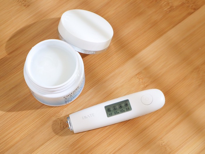 這次要來拿出編輯部壓箱寶水分檢測儀!這是只要是對膚質檢測或者是醫檢師比較專業需求的人必備的檢測器,可以快速的檢測出肌膚的含水量。利用一種叫做《生物電阻抗分析法》的方式,透過微電流通過肌膚之後的反應計算出我們肌膚的水分數據。