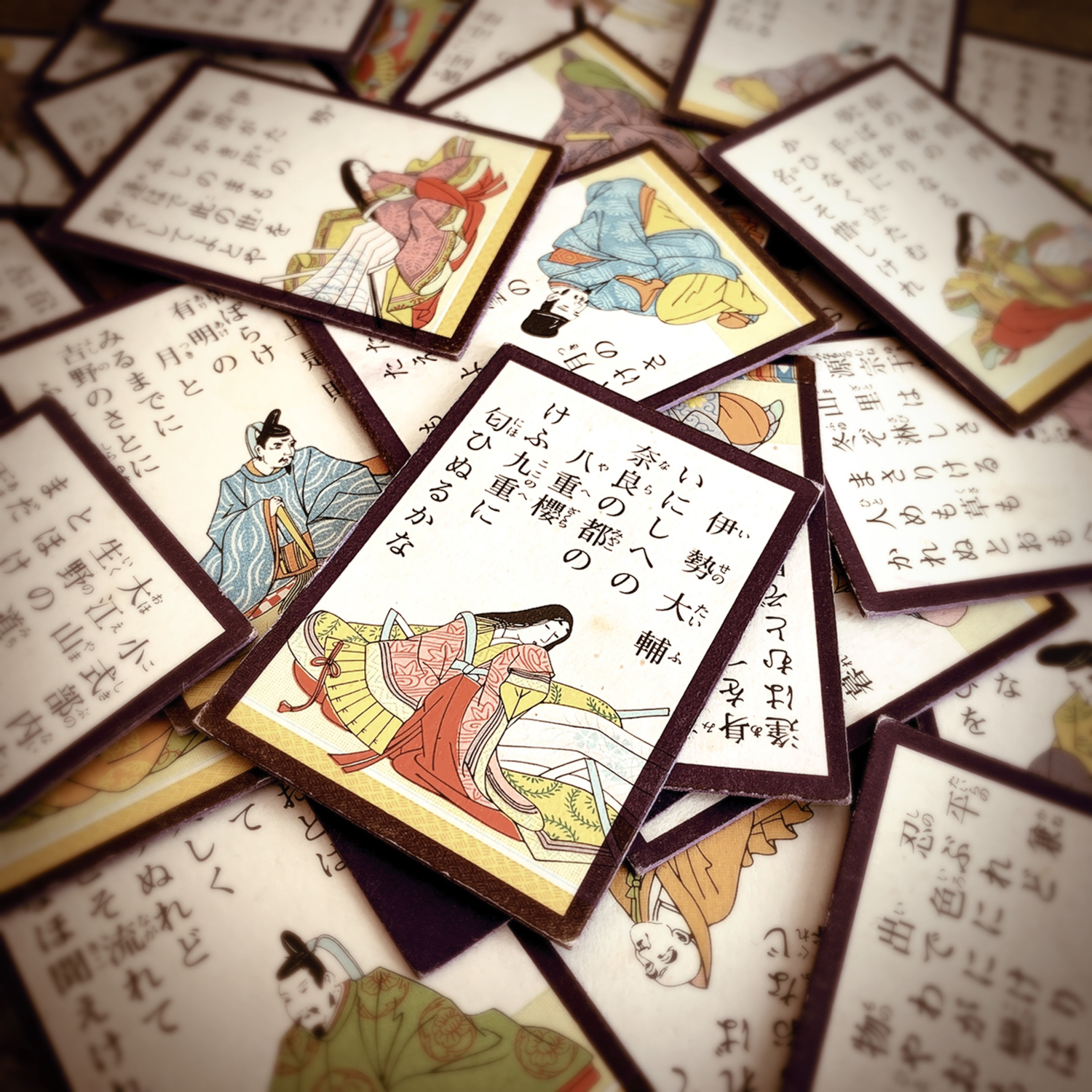 歌牌原是日本宮廷遊戲,多在正月時舉辦,依和歌5、7、5、7、7的詩句形式分為5、7、5的上句「詠唱牌」和7、7的下句「奪取牌」兩部分,共計200張歌牌,「詠唱牌」印有和歌上句以及歌人名和圖樣,「奪取牌」則印有日文假名的和歌下句。