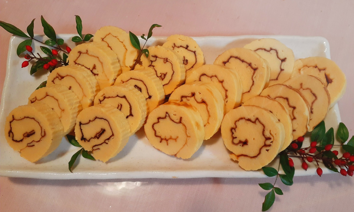「伊達卷(伊達巻/だてまき)」是日本新年必吃的料理(御節/おせち)之一,傳統作法是由白肉魚的魚漿、或是蝦漿加上高湯、味醂及砂糖調味,混入蛋液中調理煎製,再放在竹捲簾上捲製成形的甜味蛋捲,據說伊達卷是日式煎蛋料理中難度最低的料理喔!