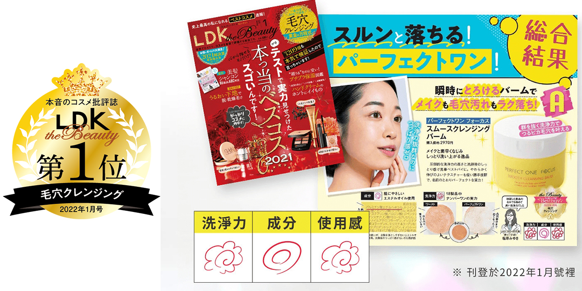 「FOCUS焦點卸妝膏」正是為了解決毛孔問題而開發的強力救星!其中最大的祕訣就在於它不只是單純的清潔,還能夠調理油脂分泌,同時兼顧保濕與收斂毛孔的功效!一推出就獲得了毒舌日本美妝雜誌《LDK the beauty》的毛孔清潔排行第一名!