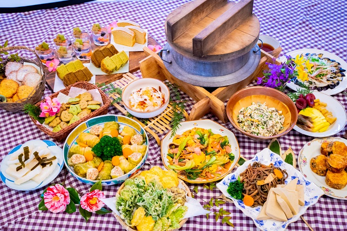 「遊山四萬十 SEIRAN之里」主打由在地的媽媽們使用在地食材親手製作,圈粉無數的美味「午餐自助吧」,食材內容視當天收獲為主,菜色有茄子半敲燒、野菜天婦羅、茶葉佃煮、洋蔥醋物等日本原鄉及手作溫暖的菜色。