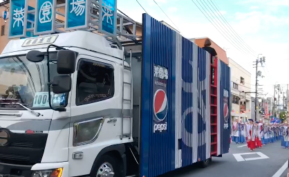 夜來祭象徵性的「地方車」為舞隊行進壓路