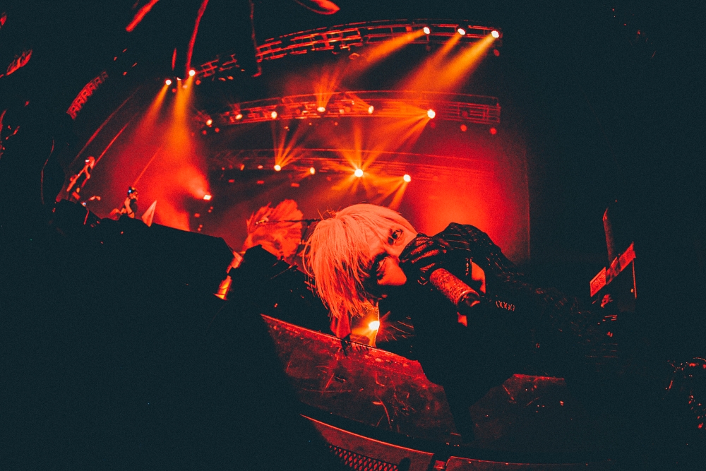 緊接著融合了嘻哈與搖滾的〈DAIDARA〉與〈Avengers〉,明快的節奏與ASH的帶動,台下一半前輩HYDE的歌迷們也馬上進入狀況跟著揮拳舞動。〈WARAWARA〉時全場揮毛巾更是立刻整個會場都團結起來。