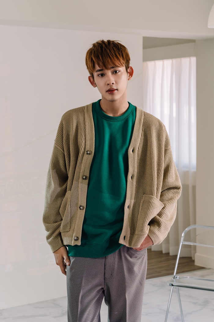 陳治廷建議男生以開襟針織外套創造層次感,搭配經典款的「休閒上衣」與格紋直筒褲,就能展現寬鬆感十足的日系風格穿搭。不管是男生或女生都適合這兩套造型,情侶間還能互相交換穿、提高實穿性,更是另一種情侶穿搭的親密展現!
