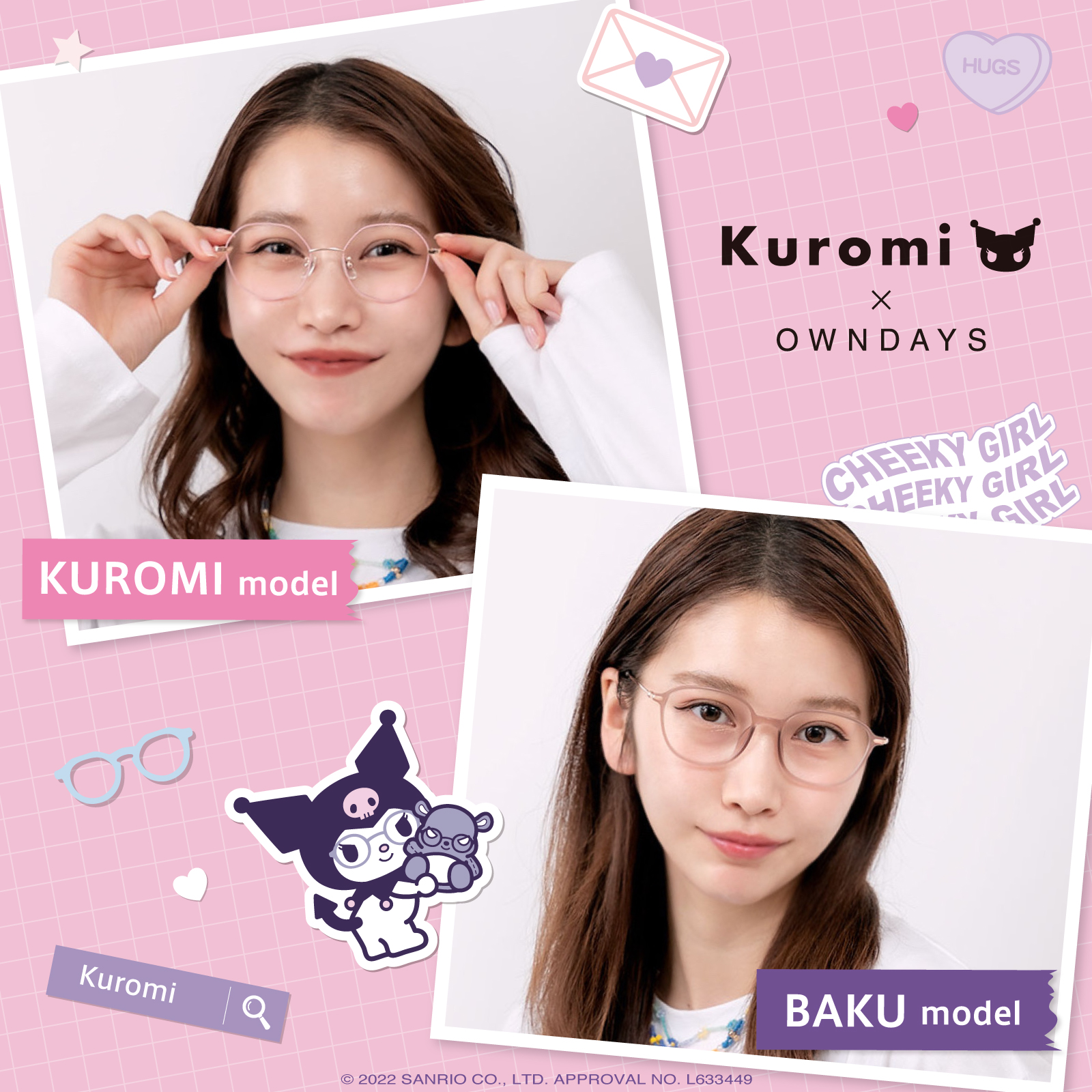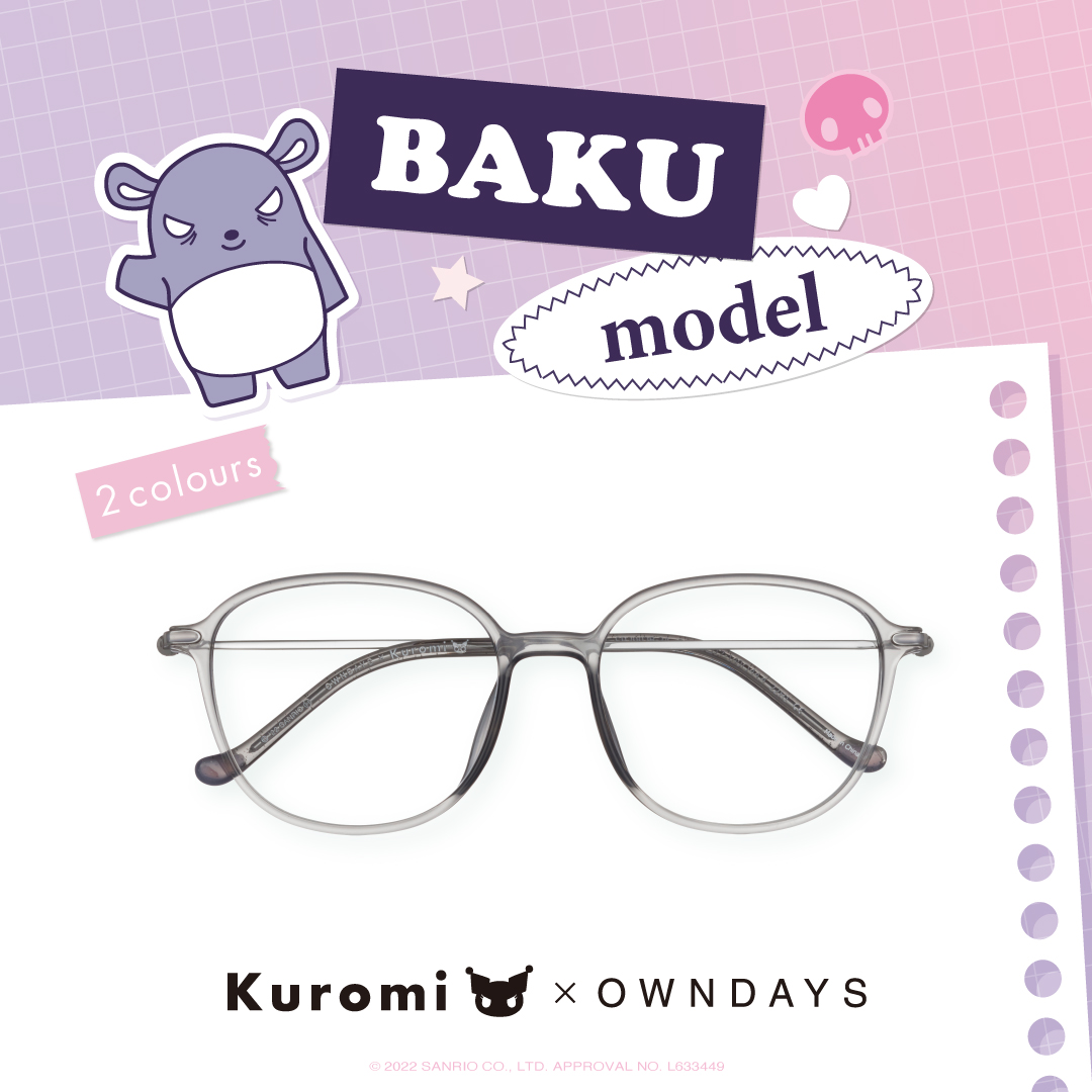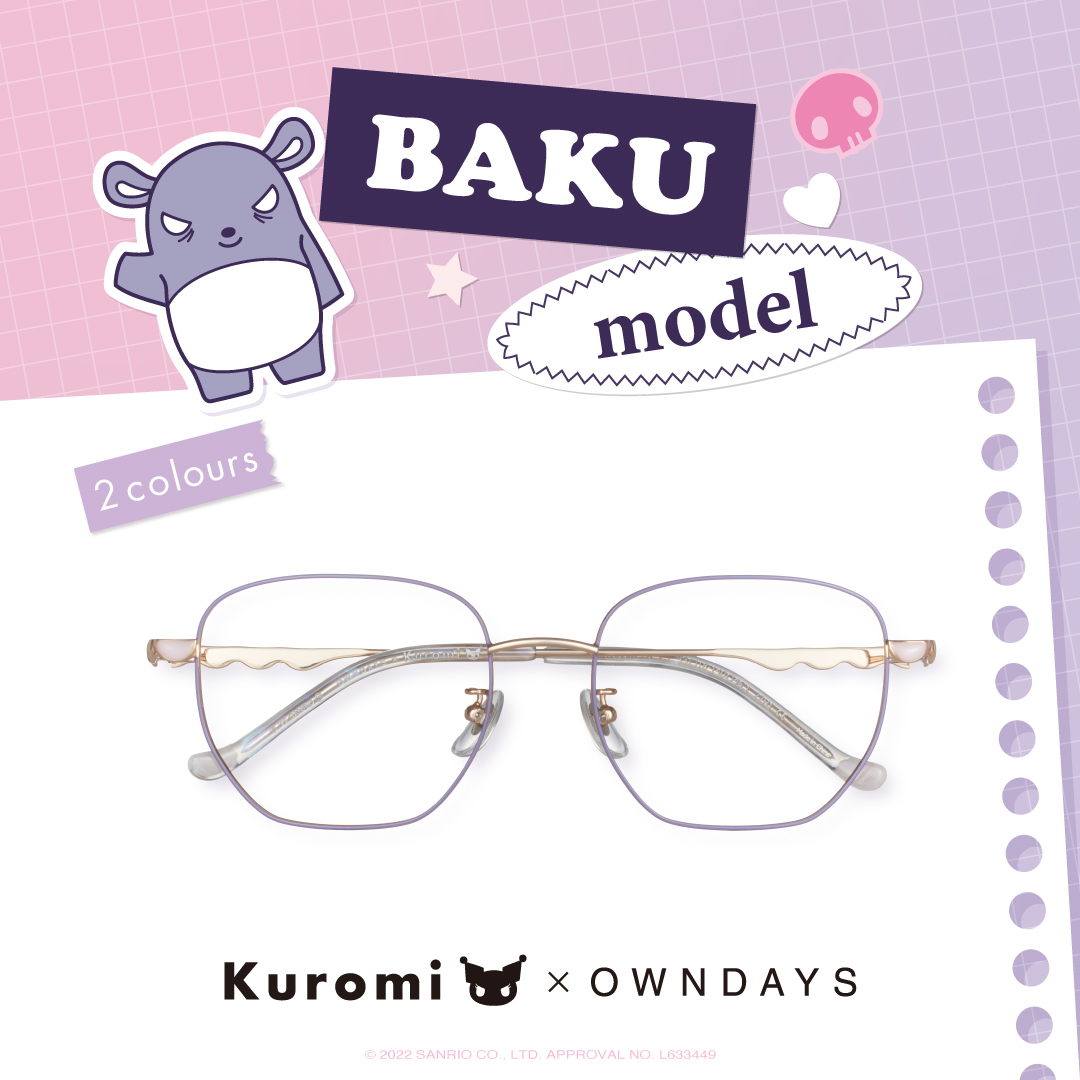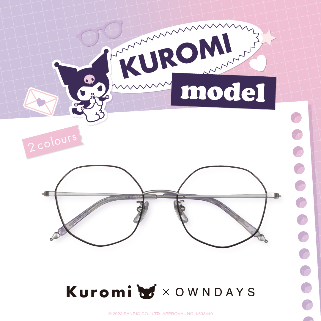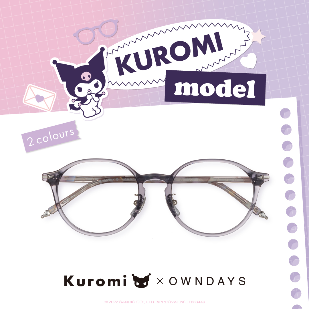 日系眼鏡品牌OWNDAYS推出KUROMI酷洛米系列眼鏡,全系列商品於2022秋季登場,這次的系列是由「2022年三麗鷗肖像大賞」第3名的人氣角色,酷洛米與它的手下巴庫登場,庫洛米是一個出生在10月31日萬聖節的少女,雖然看似粗魯但實際上非常上女心,而手下巴庫常常載著酷洛米飛上天空,是一名非常有忍耐力不會輕易屈服的角色。本次OWNDAYS將酷洛米的世界融入眼鏡設計之中,展開4個眼鏡款式各2色,透過眼鏡搭配展現自己最好的樣子。