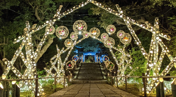 如果不想留在東京市中心人擠人的話,不妨可以去位於東京稲城市的「HANAあかり」賞燈,這裡的燈飾結合了日本傳統文化,以上千盞竹製的燈打造出濃濃和風的主題燈飾,還有一條500公尺長,放滿日式紙傘的燈飾步道,也非常美麗,喜歡懷舊風的話不妨可以去走走逛逛。