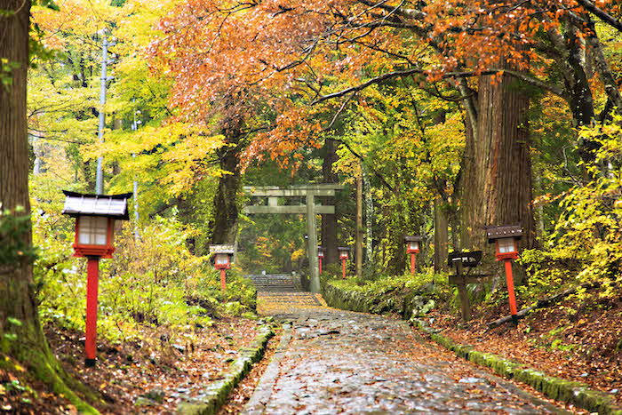 除了遠景之外,大山賞紅葉必去的近景則是大神山神社奧宮以及他著名的自然石堆砌成的石疊參道(石畳の参道),健行之餘呼吸自然空氣外,每分每秒都能讓眼中收進絕景。