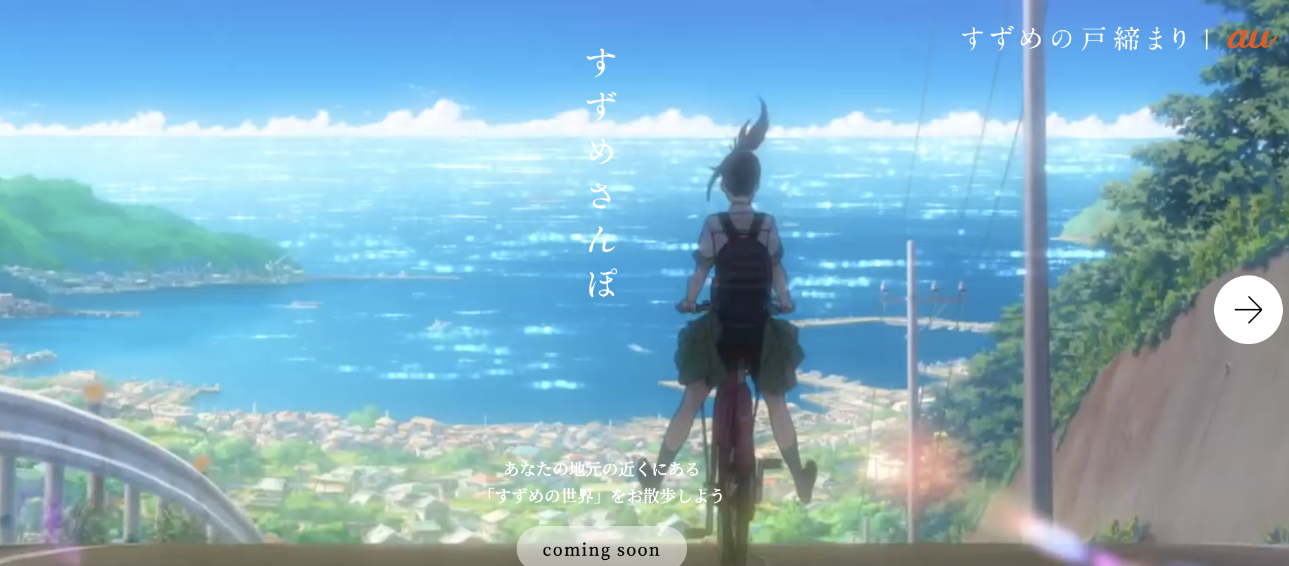 打造《你的名字》、《天氣之子》高票房動畫電影導演新海誠,這次推出新作,擔任原作、導演、編劇的動畫《鈴芽的門鎖》於2022年11月11日在日本上映,甫出便創下了極高票房,達到62億6900萬日圓,總計460萬人次進電影院觀看。據此,KDDI(日本大型電信公司)與《鈴芽的門鎖》連動,打造一個新計畫「與鈴芽的日本之旅」(すずめと旅する日本),讓觀眾也可以在智慧型手機上體驗電影中的世界觀。