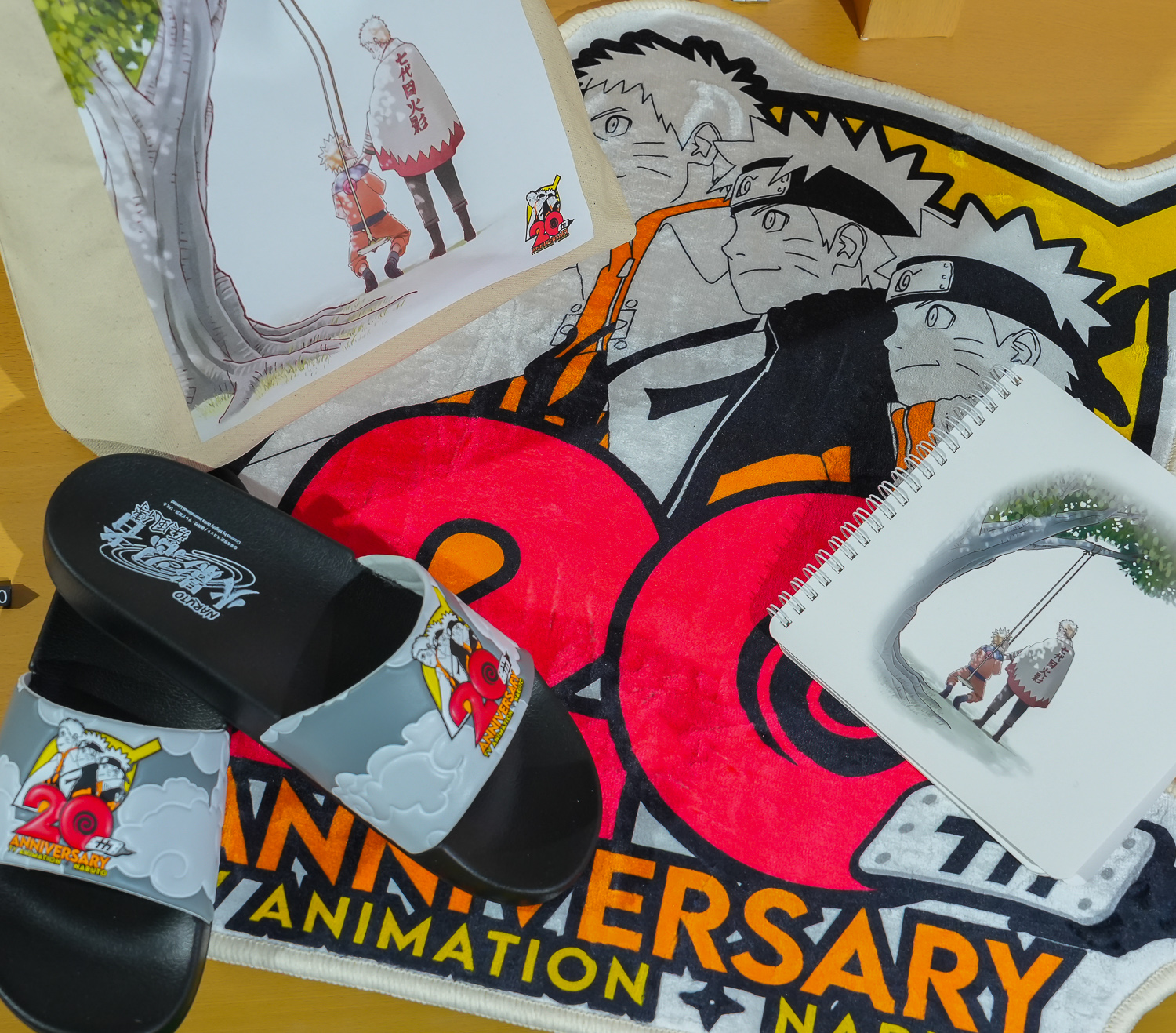 專業忍者不能缺少的潮流配件!穿上三種不同圖案的火影忍者「T恤」,再戴上色彩繽紛的單字造型「刺繡老帽」及經典雲紋印花「拖鞋」,包準你成為時下最潮的火影忍者!光是包包就有三種讓粉絲選擇,第一種以《火影忍者疾風傳》、《慕留人-火影新世代-》及《火影忍者》動畫20週年為設計靈感的三款大容量「帆布提袋」,不用擔心東西放不下!第二種以經典角色人物出發,分別是鳴人、佐助、卡卡西及20週年紀念款的「束口後背包」,讓喜愛角色應援你的出門日常!第三種封印之書造型的「捲軸後背包」,絕對讓你成為路人注目焦點!