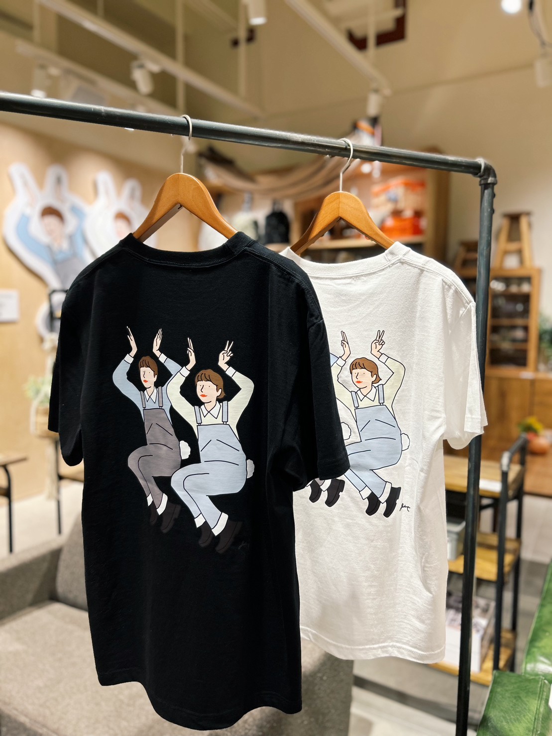 其中T-shirt共有黑、白兩色可供選擇,正面的牡丹花,象徵春天的來臨;背面則特別設計成對人像比兔子的手勢迎接兔年的到來,人像的服裝也精心選用了niko and … 最經典的牛仔吊帶褲做呈現。