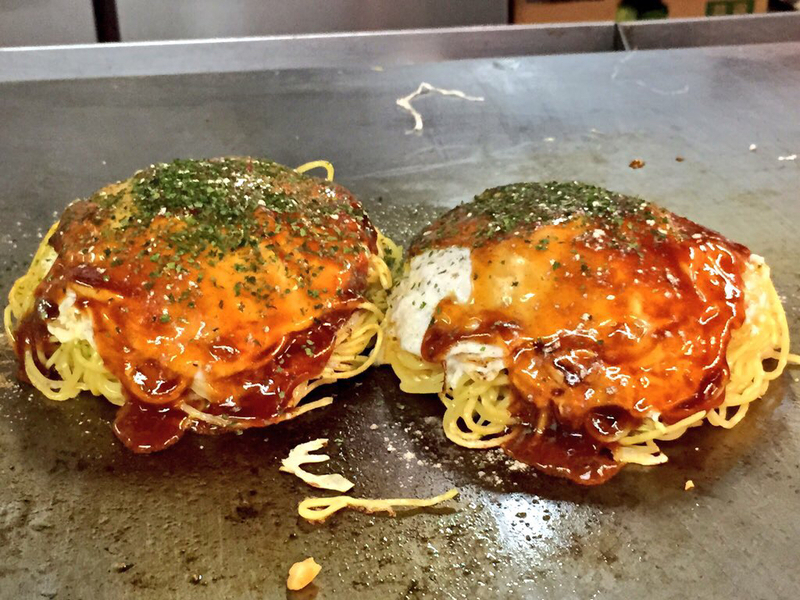 「廣島燒」的獨特之處在於它多了麵條,等麵糊煎熟後會疊在一旁煎好的麵條跟蛋上面,之後塗抹醬汁、撒上青蔥便完成。標準的「廣島燒」大多是用這種方法做的,但也有每個地區的自創版本。