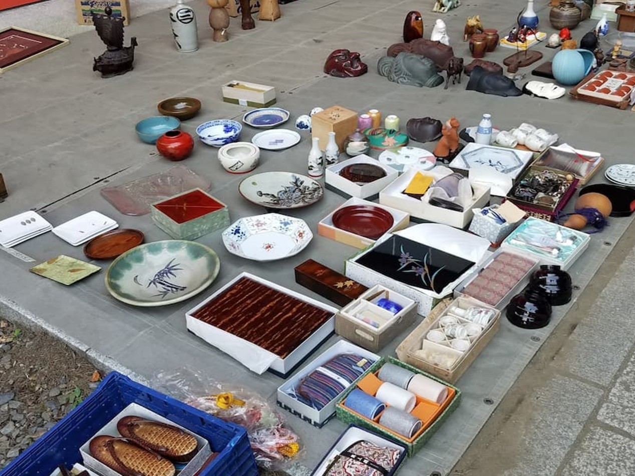 每週日舉辦的「花園神社 青空骨董市集」,是東京為數不多每週定期舉辦的小型骨董市集,會場距離新宿站東口步行約10分鐘的距離,交通非常便利,不少外國遊客都會前往逛逛,找些特色小物;而參展攤位約25~30攤,可在此找到陶瓷器、古書、文具、首飾配件等充滿懷舊氛圍的雜貨小物。會場所在的花園神社也是觀賞吉野櫻的賞花聖地,建議遊客不妨將賞櫻與逛市集的行程排在一起。