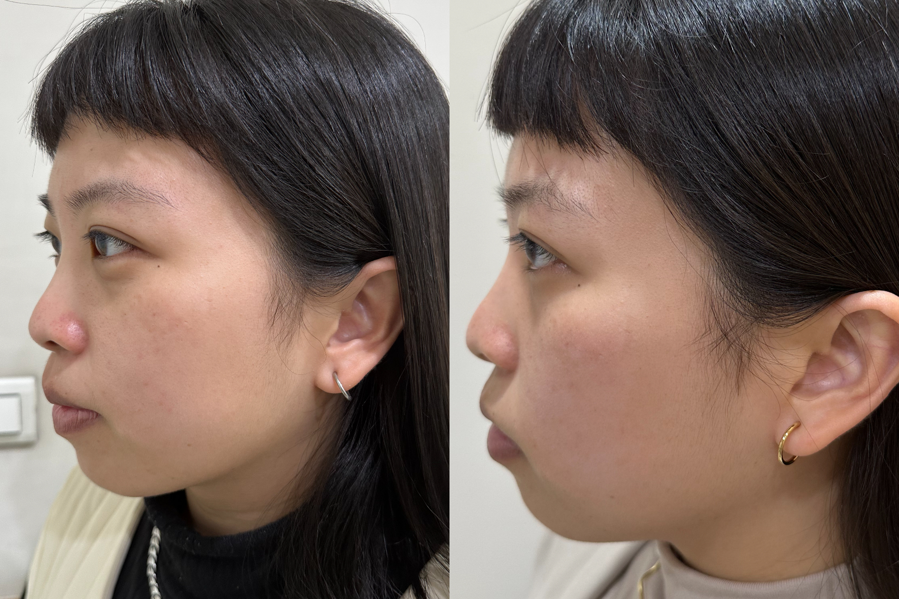 使用前(左圖)肌膚有些為顆粒感,並且有鼻翼泛紅的問題,使用後(右圖),能感受到肌膚的緊實度提升,毛孔也變得更加緊緻,讓肌膚看起來更加緊緻而不是死繃感。7天之後,能發現肌膚氣色有稍微變好,因為A醇的關係,不穩定的泛紅問題也得到改善,醫生也說明若連續一個月會有更明顯的效果,所以一定要持續力行早C晚A的保養新哲學。