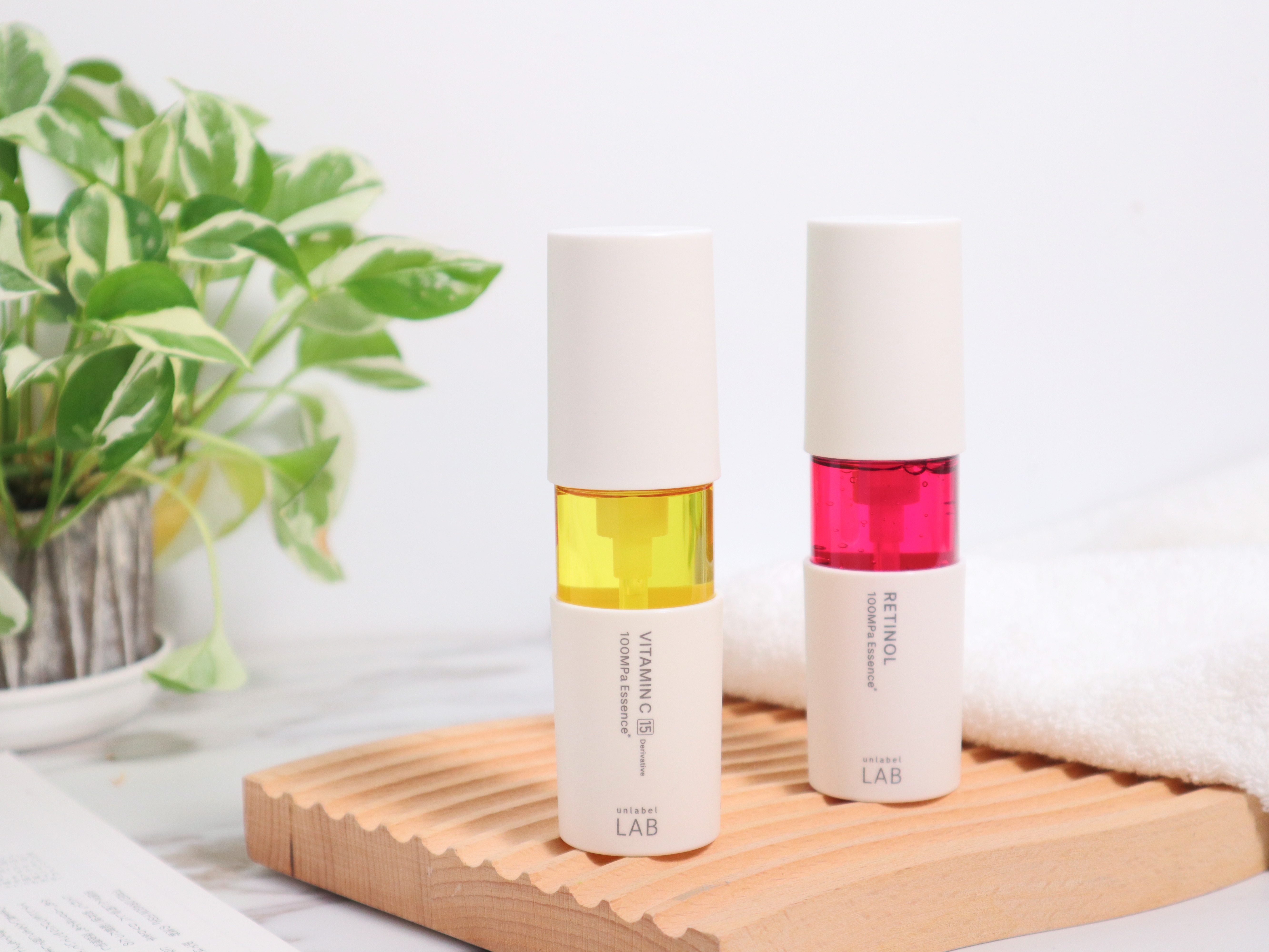 在日本賣瘋到斷貨的安博士unlabel LAB旗下的的兩款美容液正是早C晚A保養黃金法則的完美化身,利用了全球獨家超高壓滲透壓機,以超過大氣層100兆帕的壓力加壓成相當微小的「臨界小分子」,能將保養原液的成分完整保存,滲透至肌膚每一個角落,變成臨界小分子美容保養成分,可完整保存有效活性、質地舒適、清爽,更適合所有類型的肌膚使用。