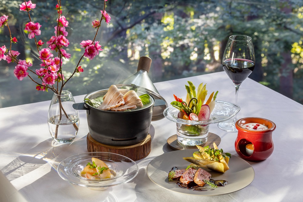 住宿期間,我們也提供可協助您補充能量及調整體能狀態的餐點。第一天的晚餐是能好好補充營養、溫暖身體的豆乳鍋,能為隔日做好準備。豆乳鍋使用了以豆乳及味噌熬煮出的溫順高湯,並可品嘗到豬肉、雞肉及當季蔬菜的美味。為了消除疲勞,第二天會提供能夠攝取優質蛋白質及熱量、使用鹿肉、豆類、雜穀等食材所烹調出的早午餐。餐點將以香草及香料來調味的鹿肉放在荷蘭鍋中燒烤而成。與使用穀物、堅果等食材製作的沙拉一起享用,能夠均衡攝取膳食纖維、碳水化合物、蛋白質等養分,打造出輕快的身體。