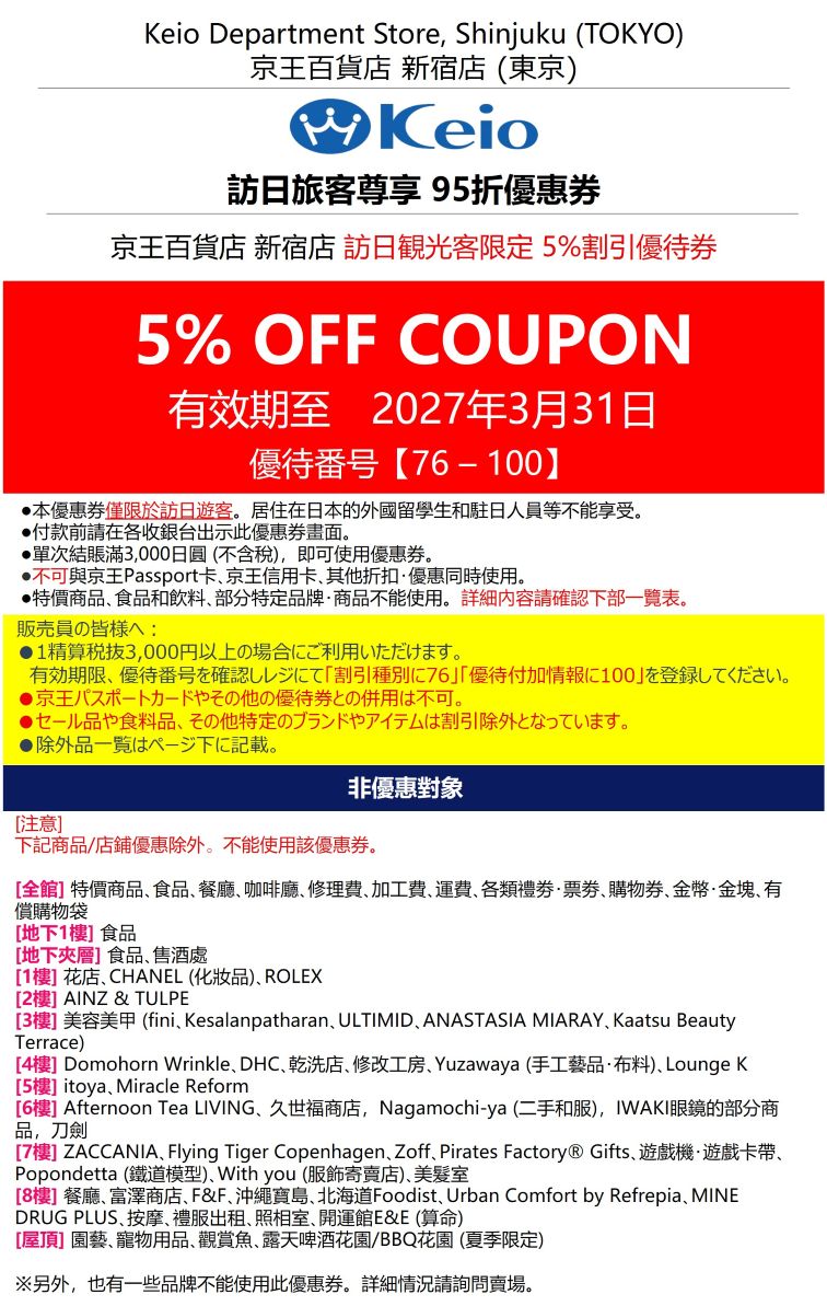 2026年京王百貨新宿店優惠券