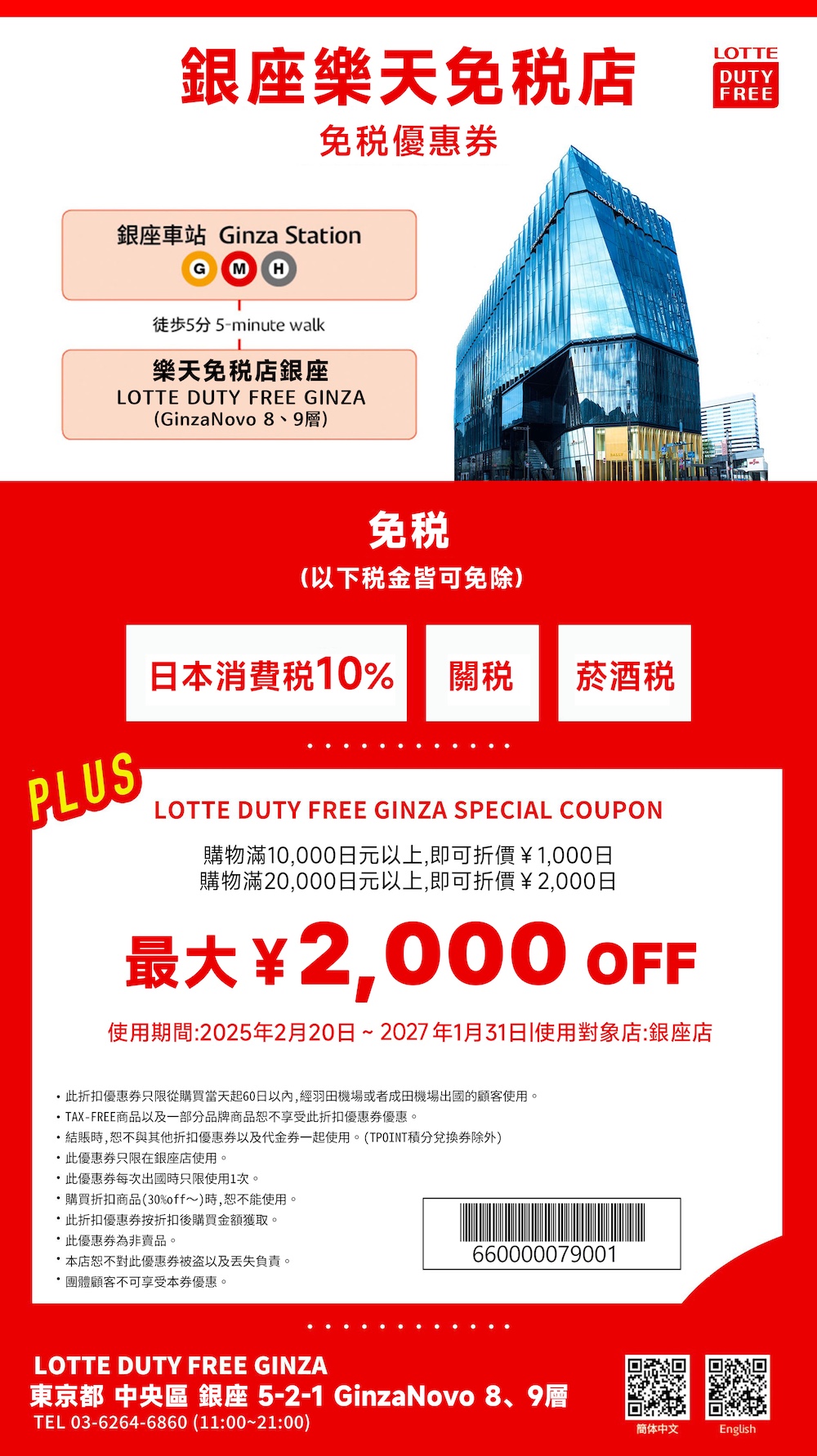 銀座樂天免稅店優惠券,最高再折2000日圓