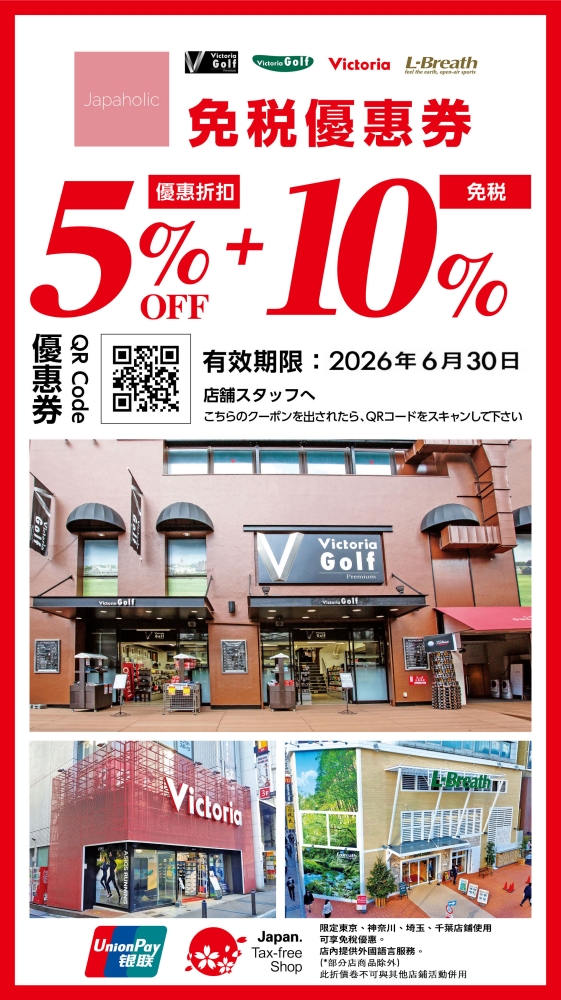 日本體育用品專賣店《Victoria》85折優惠券