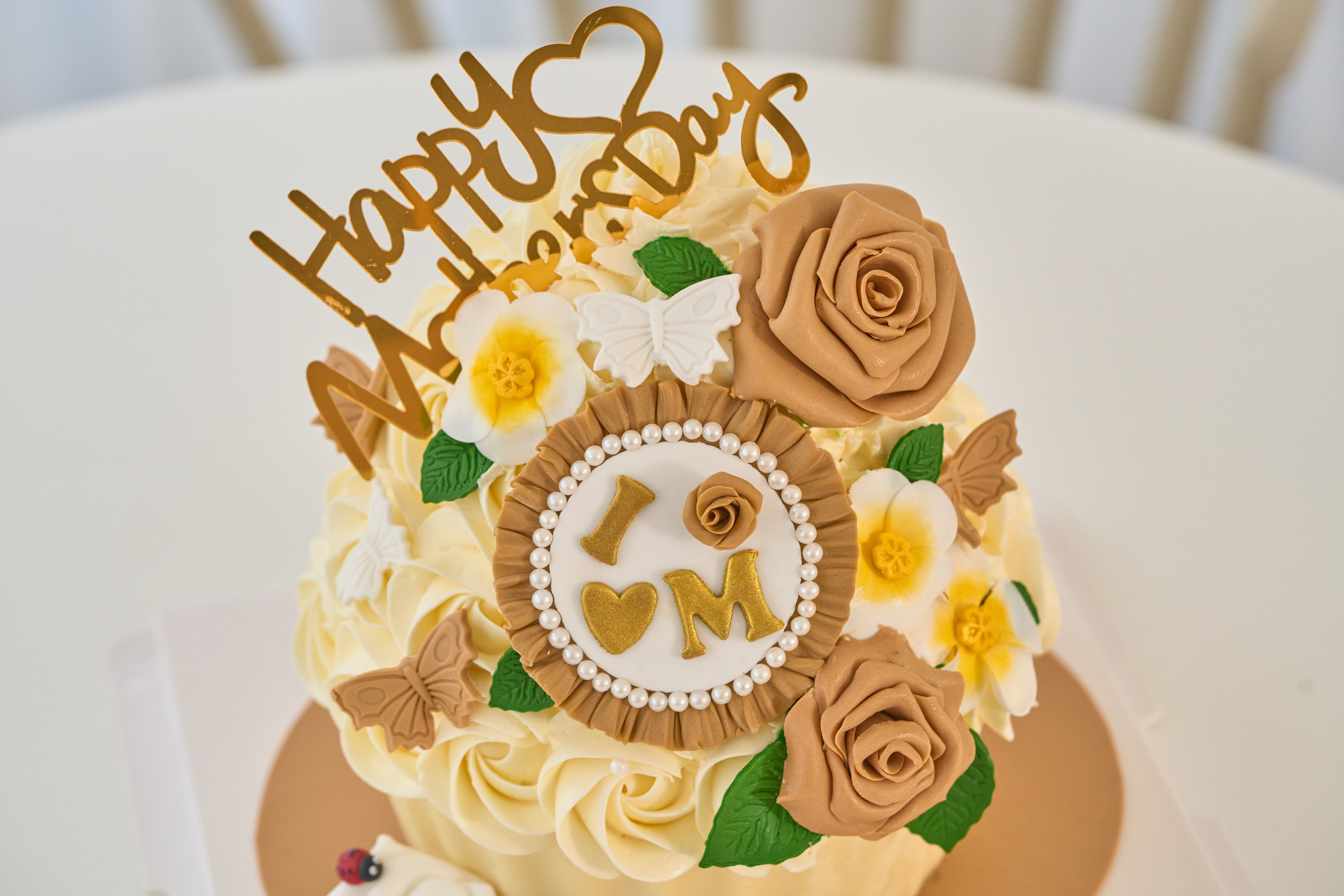 先前母親節大受好評的花系列蛋糕,今年又有全新款式優美登場!玉響。語花是一款典雅有質感的花籃型蛋糕。主廚先以巧克力技法去塑形做出花籃底殼,再用心烤製口感柔順的蛋糕體及風味迷人的內餡,並以線條優美的造型擠花將其佈滿於蛋糕頂部,最後再使用質感精巧的手作翻糖去做裝飾。全程純手工製作,精巧又不失美味。