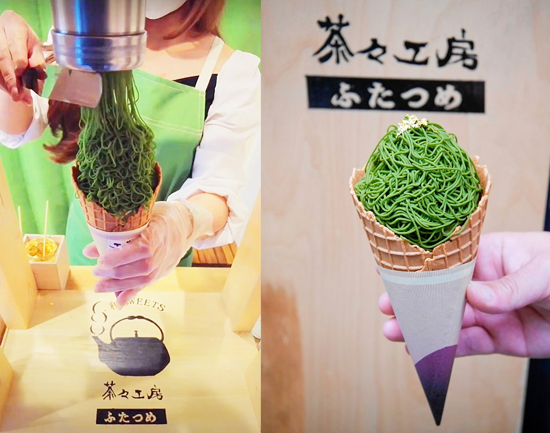 日本的甜品五花八門,你嚐過淺草的新名產「生榨和栗抹茶蒙布朗」嗎?位於東京淺草寺雷門和仲見世通附近,於去年9 月開業的「茶茶工房Futatsume」,其招牌甜點「生榨和栗抹茶蒙布朗」,夯到可說是 「淺草的新名產」的代名詞,每天門庭若市;而前來朝聖的遊客目睹著店員現場的製作過程,使用冰淇淋用的華夫甜筒,像法式芭菲般將食材層層堆疊,接著擠上抹茶栗子泥作為最美Ending,充分的視覺饗宴,若將過程拍成影片發佈到社群網站,肯定會引起大量關注!