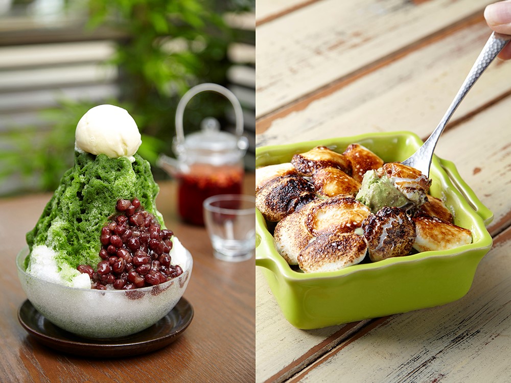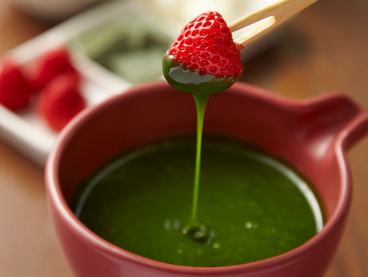 套餐提供艾草生麵筋、派、白玉等,配上醬汁即可品嚐每個食材特有的口感與好滋味。最後將醬汁澆在冰淇淋上,溫熱的醬汁在冰淇淋上凝固形成酥脆的口感,溶化後的味道變得更柔滑醇厚。抹茶×巧克力×冰淇淋×冷熱交會,連結尾都幸福滿滿的完美甜點,非抹茶巧克力鍋莫屬;來到東京,絕對不容錯過日本特有的抹茶巧克力火鍋。