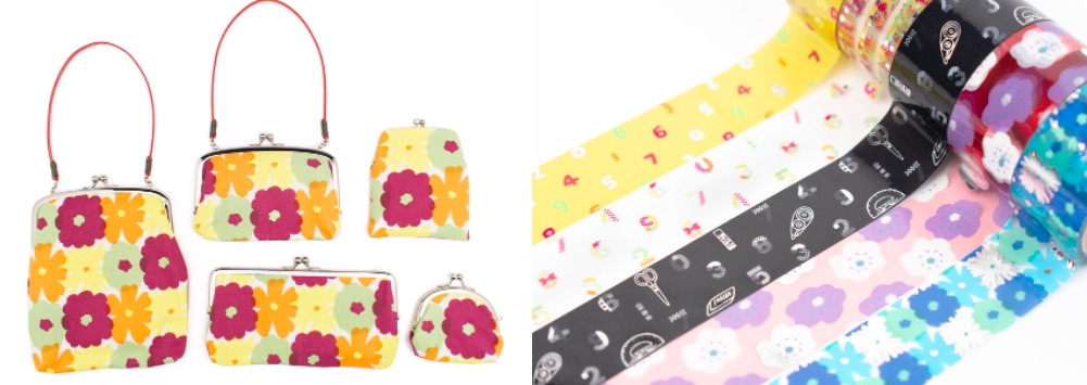 台灣擁有水果王國美名,SOU・SOU也將台灣盛產的芒果、蓮霧、荔枝、香蕉、芭樂及火龍果鮮豔欲滴的色彩,巧妙地融入日式紋樣中,有日常穿搭的口金包、分趾襪、朱印袋等,也有實用的透明PET膠帶、信紙組等,光看顏色彷彿聞到水果香!
