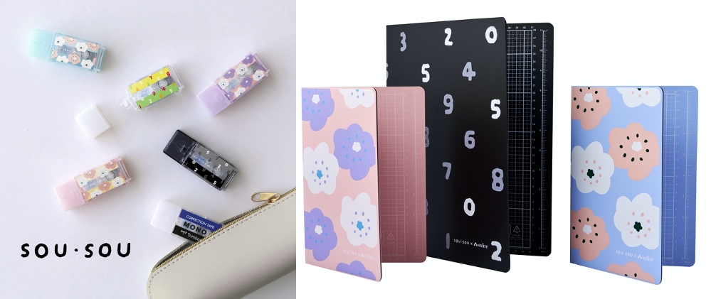 變化萬千的花磚是許多人對台灣老屋的記憶,SOU・SOU將典雅柔和的花磚色調融合於「微笑」紋樣中,可愛和風又帶有一點台式復古美學,像是Tombow MONO口袋型修正帶、iMAT 環保無毒切割墊、Jean雙層書寫造型便利貼等,都是文具迷必收的單品。