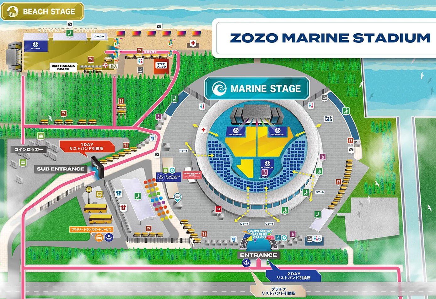 「MARINE STAGE」所在地為千葉海洋球場 (ZOZOマリンスタジアム),是日本職棒千葉羅德海洋隊的主場,可容納人數為3萬人,除了舉辦SUMMER SONIC,也很常舉辦各種類的演唱會。