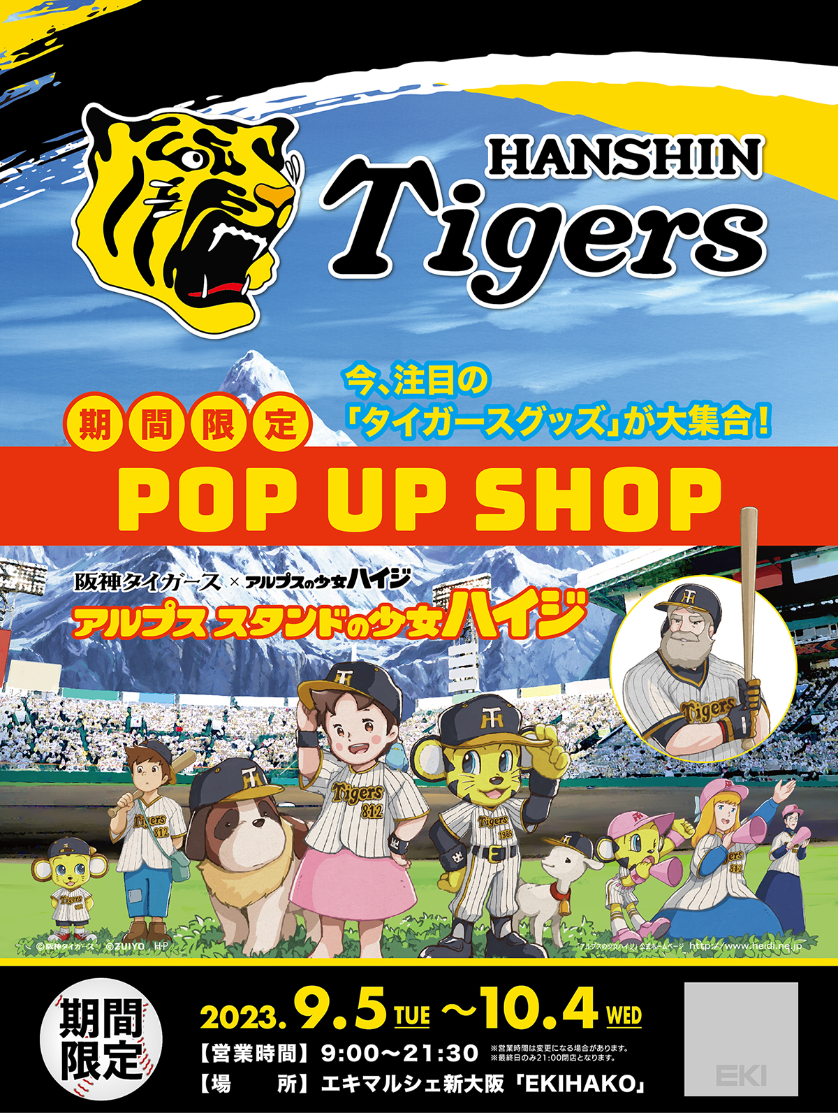 ■ 店名:『阪神タイガース+アルプススタンドの少女ハイジ』ポップアップショップ(暫譯:『阪神虎+小天使』快閃店)