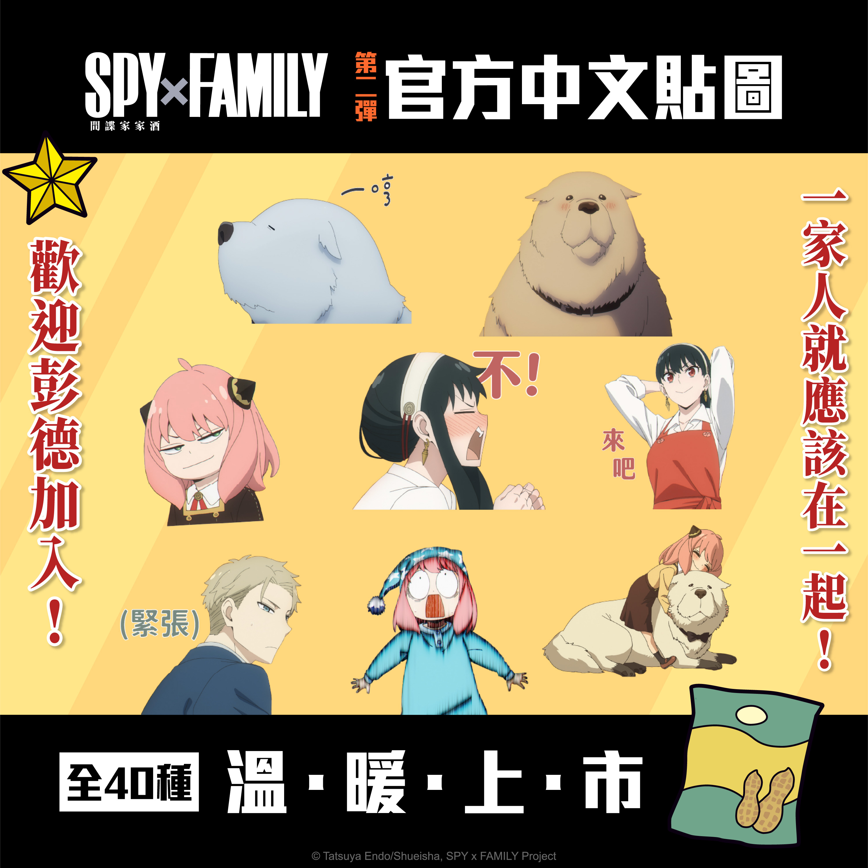 而隨著《SPY x FAMILY間諜家家酒》的熱潮,周邊商品也受廣大粉絲喜愛!人氣超高的「中文LINE貼圖」也即將推出第二彈,這次圖案中搶先釋出了有可愛的萌寵「彭德」消息,光有「彭德」就值得下載傳給朋友了!更多貼圖圖面也將陸續公開,貼圖預計於10月17日上架。