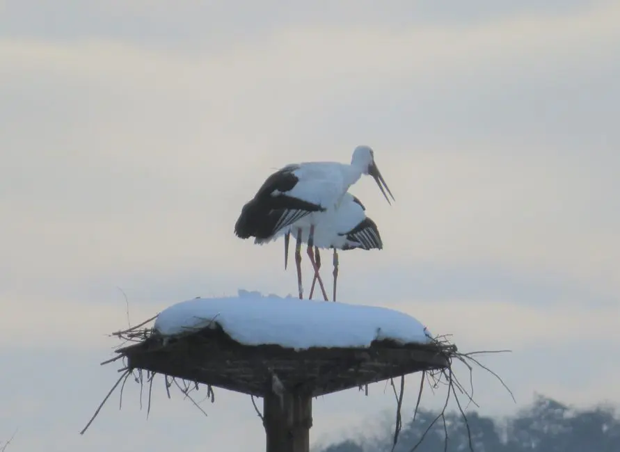 城崎溫泉發源相傳白鸛鳥為療傷受傷的腳,浸泡於一處水池當中,而人們即於此處發掘出現今知名外湯的「鴻之湯」,奠定了城崎溫泉1300年以來的歷史。白鸛鳥除了成為城崎溫泉重要的代表,也是幸運的象徵。城崎溫泉的「HACHIGOROU戶島濕地」,不分四季皆可坐在觀賞台親眼觀賞到幸運之鳥「白鸛鳥」之姿,還有機會捕捉到白鸛鳥夫妻心心相惜、依偎著的動人畫面。白鸛鳥白而帶黑的身姿,柔和地穿梭於冬季銀白世界,為雪景增添一份趣味性。
