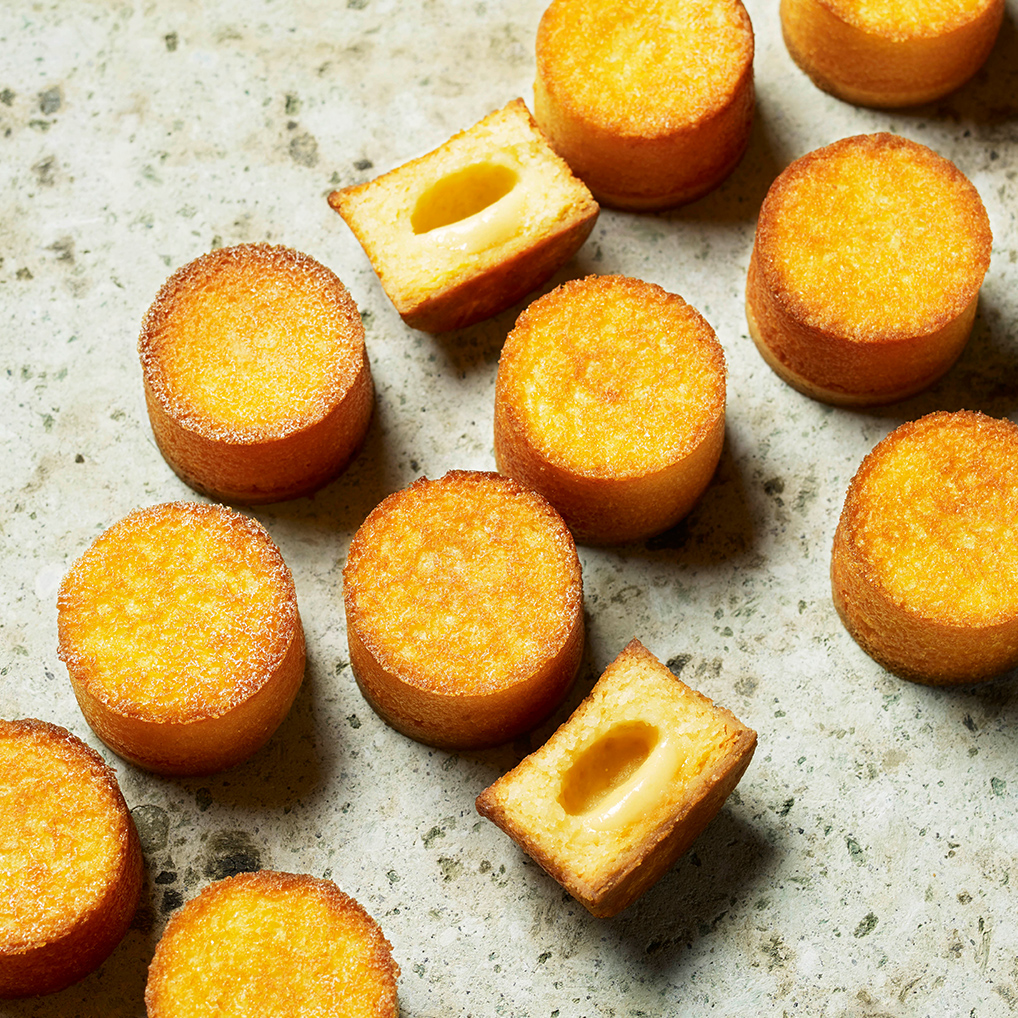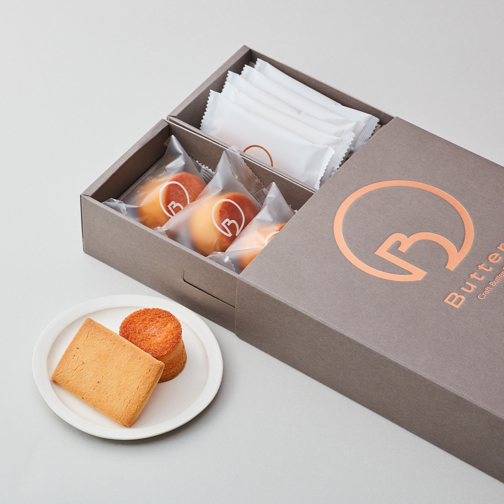 連續兩年榮登日本航空JAL國內線頭等艙御用點心的Butters,三年半以來創下銷售超過500萬顆的佳績,嚴選北海道奶油,經發酵的奶油除富含濃郁香氣外,更帶有優格獨特的香氣,口感和香氣似布列塔尼酥餅、費南雪,以經典法式配方為調整中心,創造出表面質地蓬鬆又略顯酥脆的口感。一口咬下即可發現內部雖然呈現空心狀態,但卻有牛奶醬在其中,醬料使用製造奶油產生的脫脂奶粉和鮮奶油細細熬煮而成,蛋糕表面則以法式鐵板壓製烘烤,因水分無法散失所產生的空洞,反而在品嘗的同時,能享用到濃醇的北海道發酵奶油和濃郁滋味的牛奶醬,創造輕盈口感。