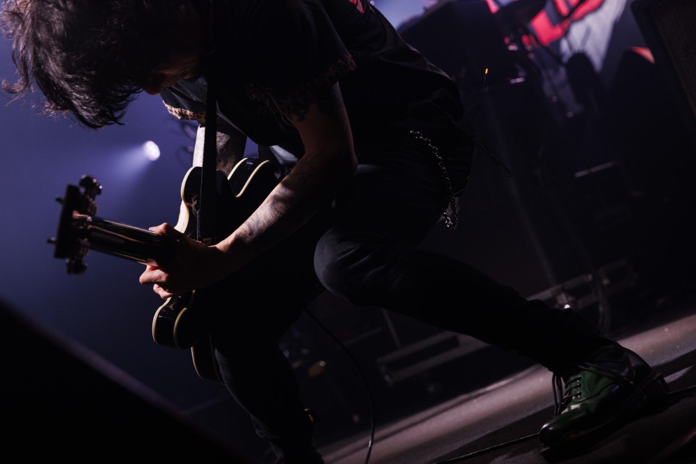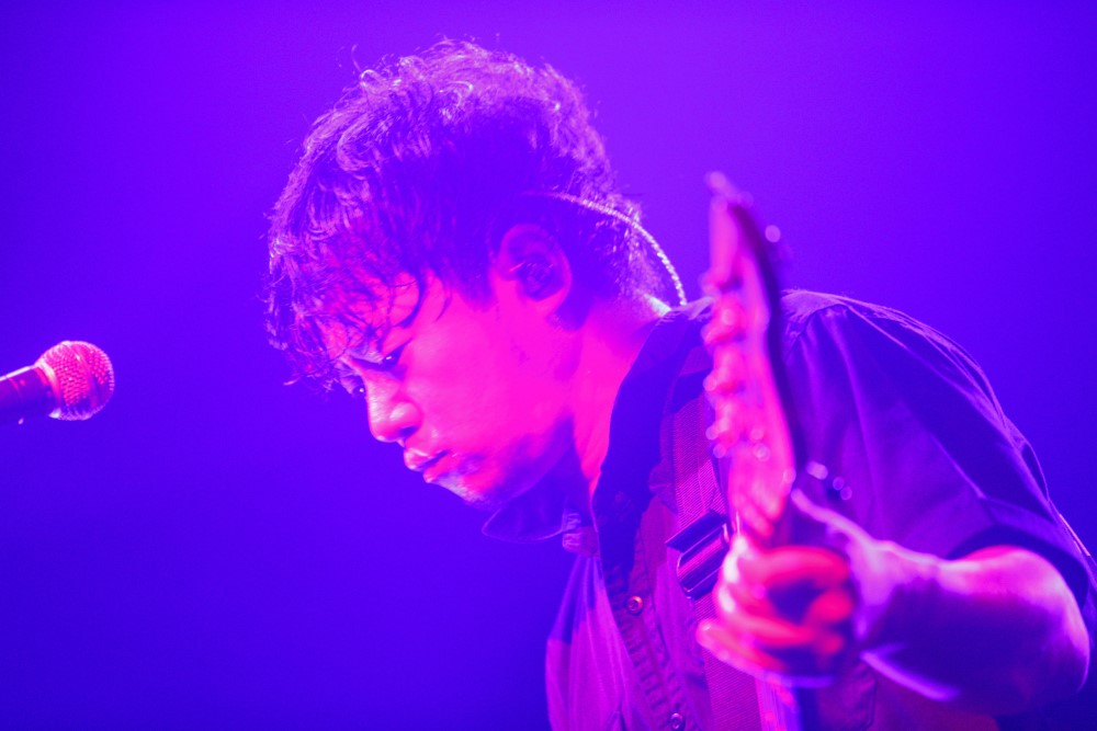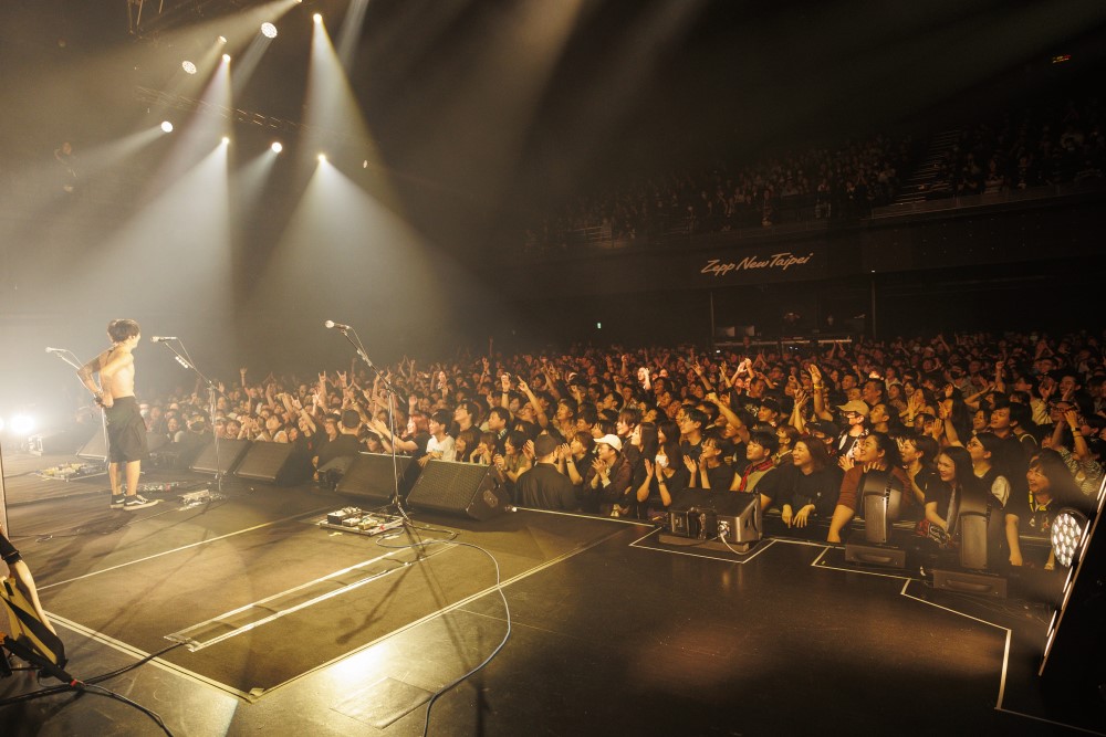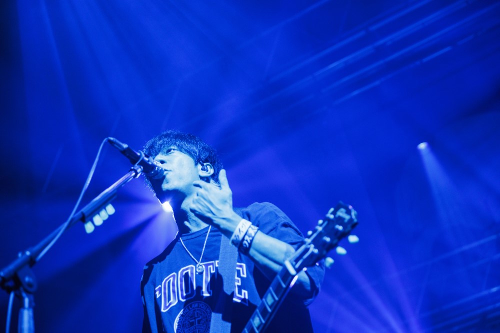 沒想到吉他手生形真一一開口就是整句發音標準的「謝謝!今天很開心!(中文)」,就在大家驚喜之際,馬上切回日文連說兩次「但只記得這些(笑)」而貝斯手高田雄一則用日文和大家問候晚安及表達久違來台的興奮之情。