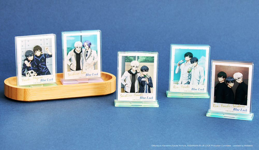 想要桌面保持乾爽嗎?就交給有蜂樂、潔、千切、凪、玲王和糸師凜六款選擇的「木杯墊」吧!喜歡亮片閃閃的粉絲看過來,五款「流沙杯墊」,上下搖一搖就會發現裡面有各角色的帥氣側臉!總覺得家裡有點單調嗎?國神、馬狼及潔等八款全身「角色立牌」搭配後方劇照底片,放在桌上光是看著心情就好了!五款「盲抽立牌」,看你抽到展現難能可貴友情的潔與蜂樂及凪與玲王款,還是競爭感十足的潔與糸師凜款呢!