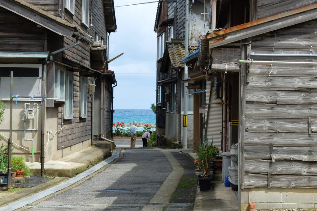 位在距離城崎溫泉一站距離的竹野站,沿途可見一座座茶色的日式復古燒杉板房屋陳列於街道。漫步穿梭於房屋間所形成的細小道路,彷彿穿越至小說世界內的景色,是竹野具有代表性的特色街景。由於當地面臨日本海,長期受帶有鹽分的海風吹拂,到了冬季更是會降下靄靄白雪,燒杉板建築其實也藏著當地居民的生活智慧。為了使房屋免於海風的毀損,當地建築運用燒杉板將房屋圍起,保護房屋,長年下也造就了此地獨特的景色。