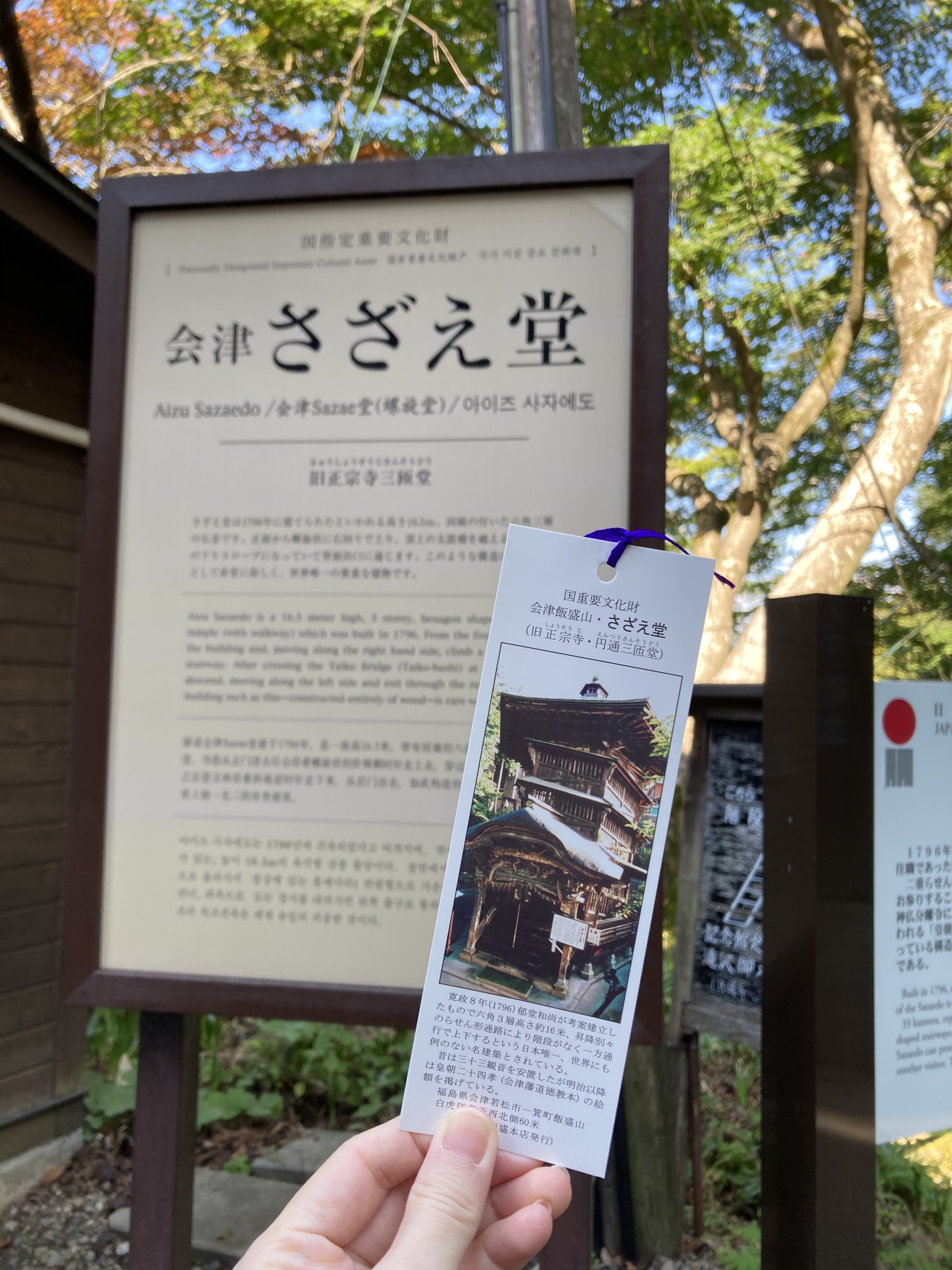 蠑螺堂位於會津若松郊區的飯盛山,這裡更是因為為白虎隊自刃之地而出名,此地設立了一座「白虎隊紀念館」,緬懷這群英年早逝的武士們,館內收藏了超過一萬件與白虎隊及戊辰戰爭相關的資料與文物,白虎隊員親筆手記、自刃之刀以及以及武器等等,參觀完後會被館內的情緒渲染,即使館內禁止攝影,但其所帶來的影響卻是照片無法匹敵的。