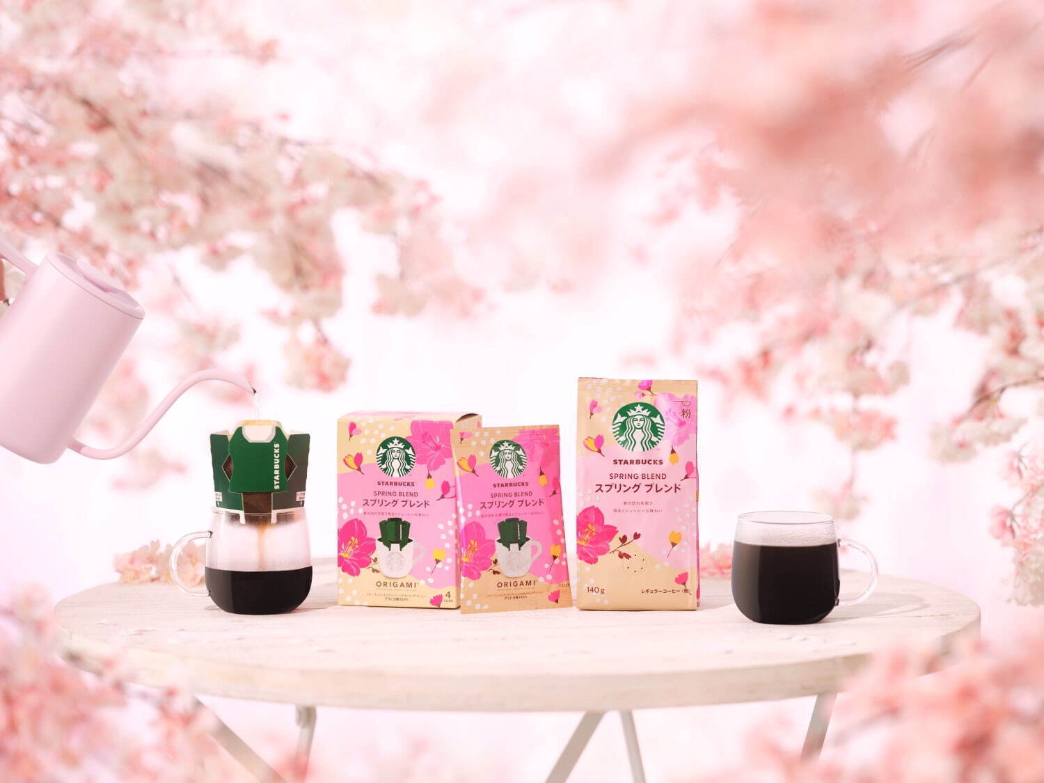 而這款能夠在自家或辦公室都能夠輕鬆地沖泡綜合咖啡則分為了「スターバックス オリガミ パーソナルドリップ コーヒー」(星巴克摺紙個人滴漏咖啡)以及「レギュラーコーヒー(粉)」(暫譯:磨豆咖啡粉),讓人無論身在何處都可以品嚐到星巴克的咖啡,十分地方便。而且兩款的外包裝都採用櫻花為主軸的可愛設計,讓咖啡從外觀看來就顯得十分豪華。