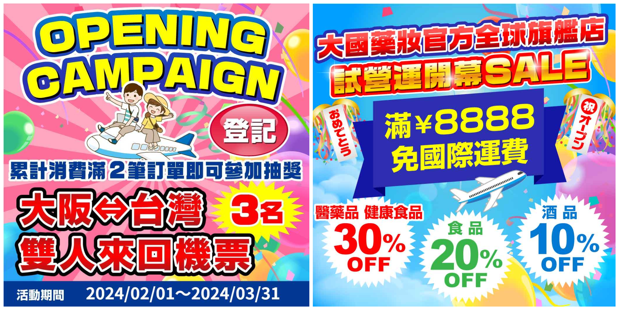 ■ 活動內容:活動期間內於大國藥妝官方全球旗艦店訂購商品,商品金額扣除折價券折扣後,單筆訂單滿8,888日圓時,即可享免國際運費。
